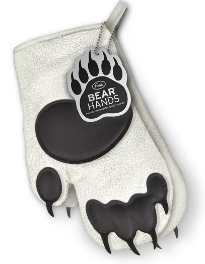 It's time to take pans out of the oven with your BEAR HANDS! Place Fred's grizzly-size oven mitts over your paws and beat the heat. These quirky oven mitts are a perfect addition to any kitchen and sure to make you smile! Perfect for cooking, baking, and grilling!