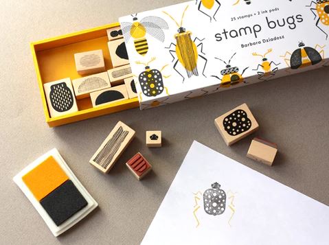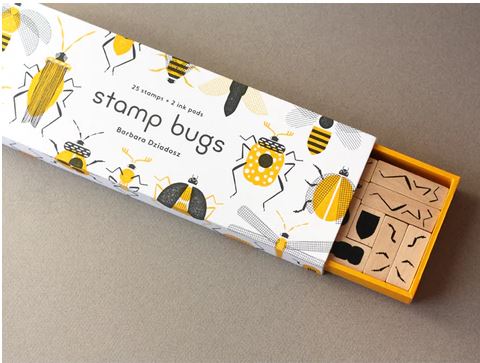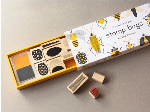 Bugs: Bumblebees, dragonflies, fireflies, ladybugs, spiders! This sturdy matchbox-style box contains twenty-five wood-backed rubber stamps in an assortment of buggy shapes and textures. A veritable kit of bug parts---heads, bodies, antennae, legs---Stamp Bugs contains everything you need to create your favorite insects or invent new ones!